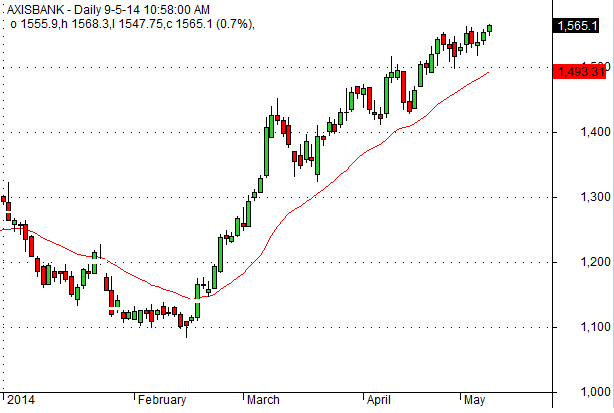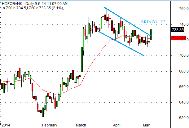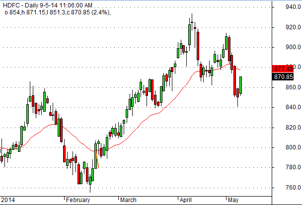 First, let’s set our eyes on Nifty, we even posted on our social networks today (9th May 2014) that Nifty is trading on major support zone when Nifty was trading at 6701, almost after a few minutes Nifty started its upward surge and hit 6780. It is likely that within uptrends major supports lead to buying. Look at the chart of Nifty below it reacted to the major support of 6690 and is now trading at 6762.