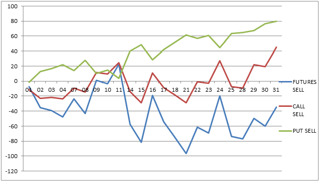 In the chart and data above, one would assume that the characteristic payoff of all futures, calls, and puts should look like. Let us see the actual data from NSE derivatives for the month of Jan-2013 with the expiry date of 31st Jan 2013.