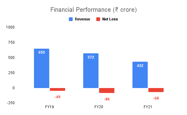 Revenue: -18.5%; Net loss: NA (FY19-21 CAGR)