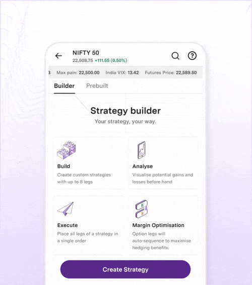 Execute complex option strategies effortlessly — whether you’re a beginner or a pro. Build strategies with up to 8 legs, analyse each leg and the whole strategy with Greeks, payoff graphs, risk-reward ratios, and probability of success. This tool will also auto-sequence your legs for optimal margin benefits and allows you to set entry, stop-loss, and target — all in one go.