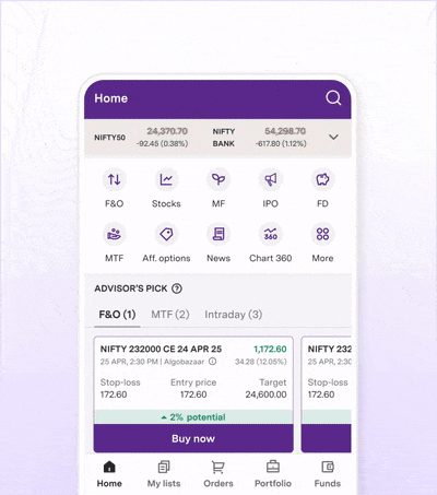 All your favorite indices, stocks, and F&O smartlists are now easily accessible right from the enhanced Home tab. Enjoy a cleaner, more intuitive design that lets you navigate faster and make quicker decisions. Whether you’re trading or tracking, everything you need is right at your fingertips.